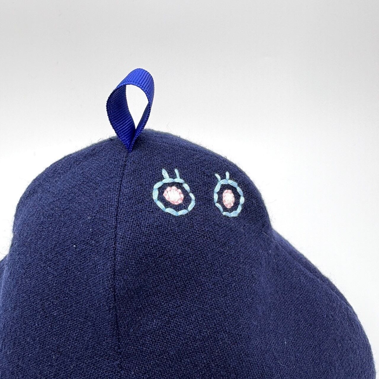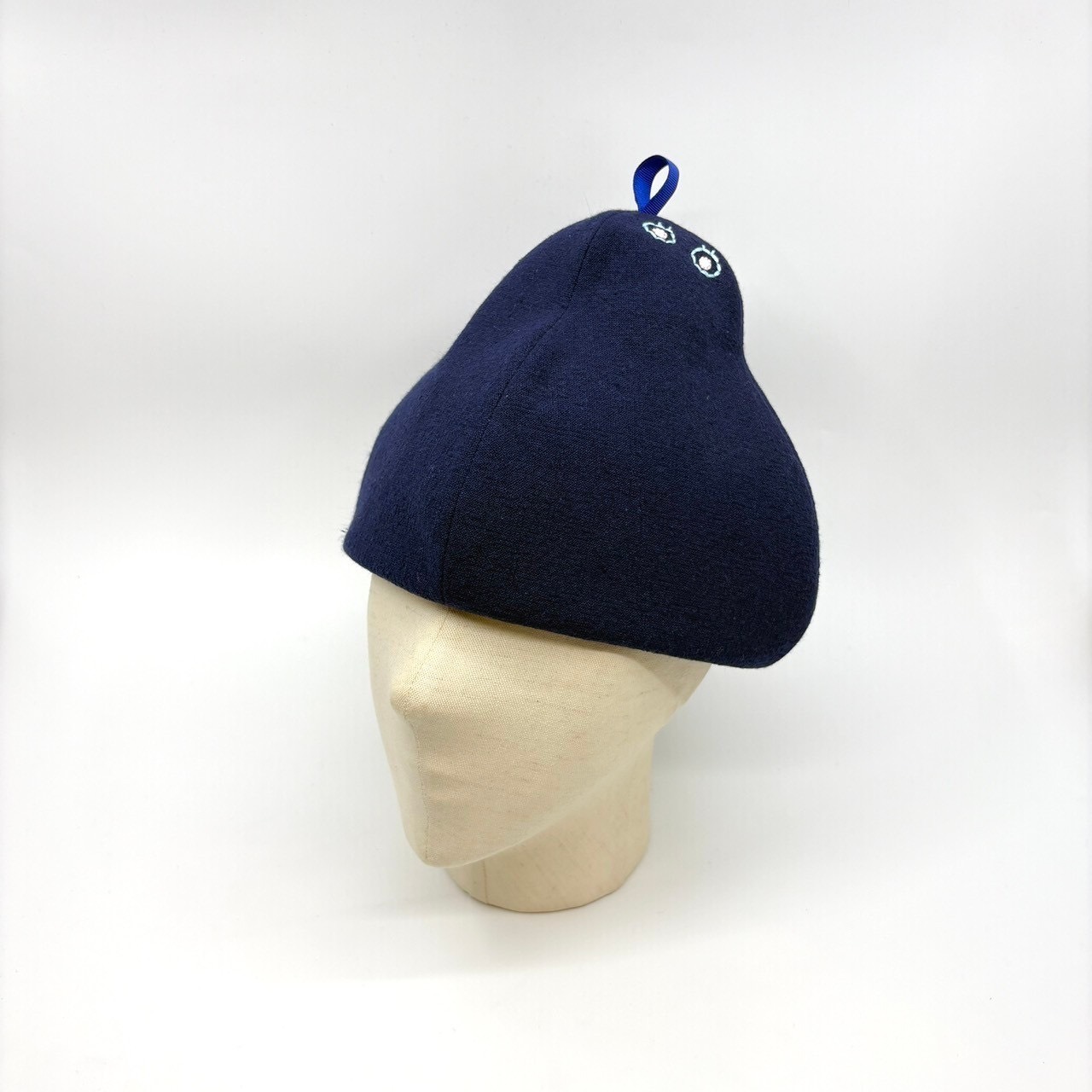 まるで洋ナシの様なシルエットは、パタ-ンから製作したオリジナルシルエット。目玉の刺繍で不思議な生き物のよう!笑コーディネ-トのポイントに是非☆