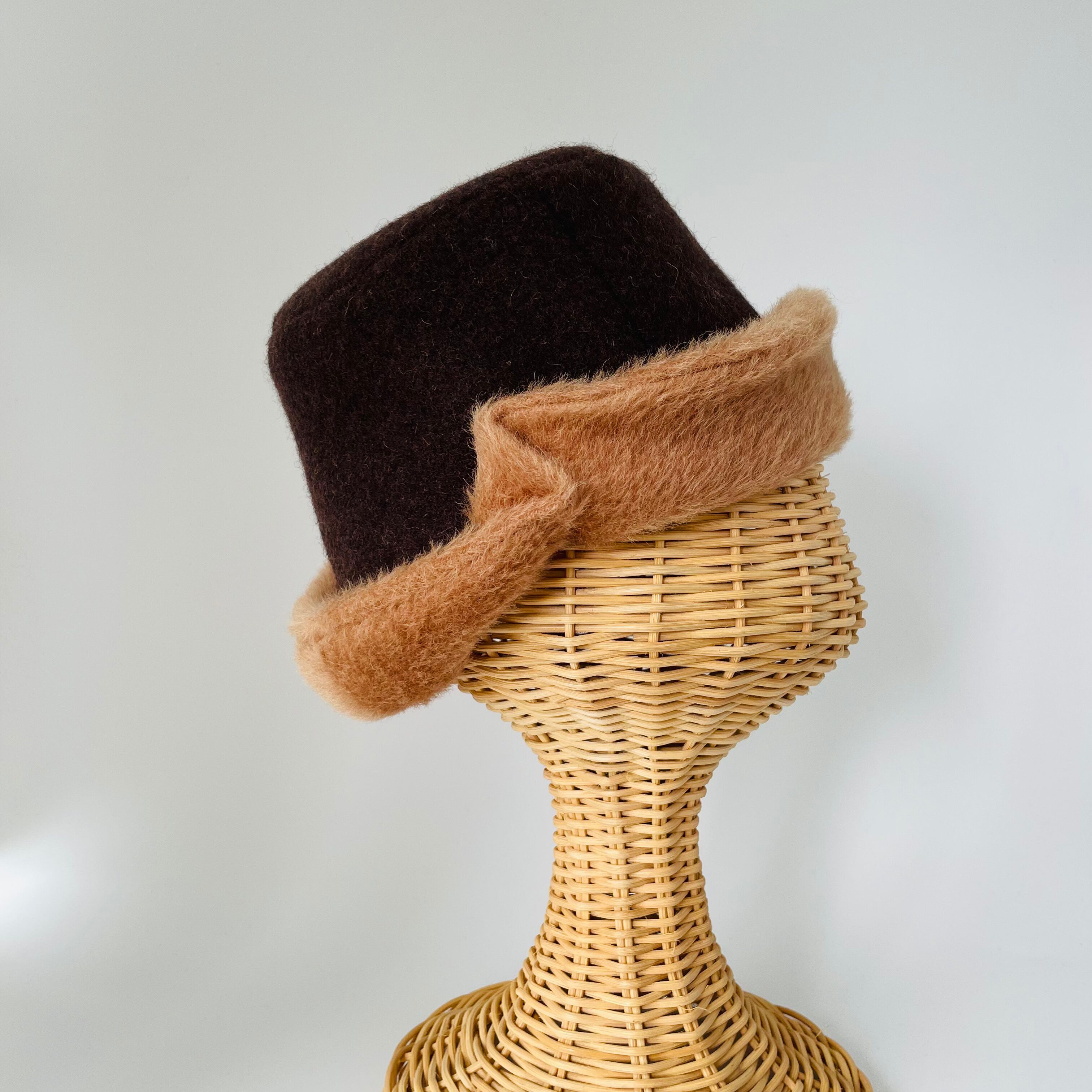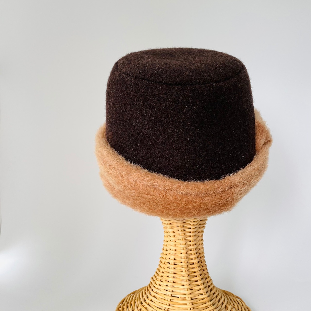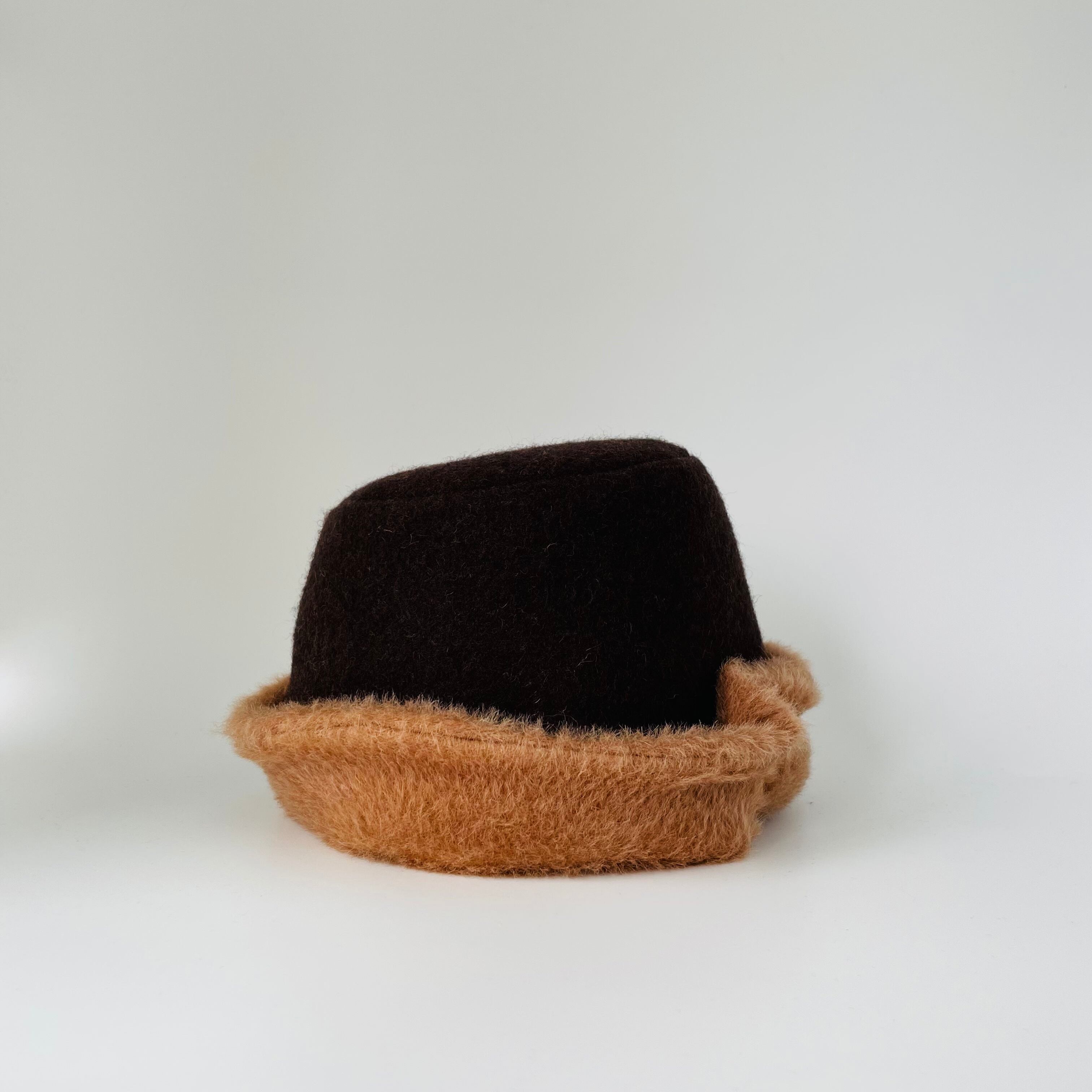 ト-クの様な形ですが、ふわっとした生地を使用しているので、カジュアルな服装にもばっちり!パタ-ンから製作したオリジナル。コーディネ-トのポイントに是非☆