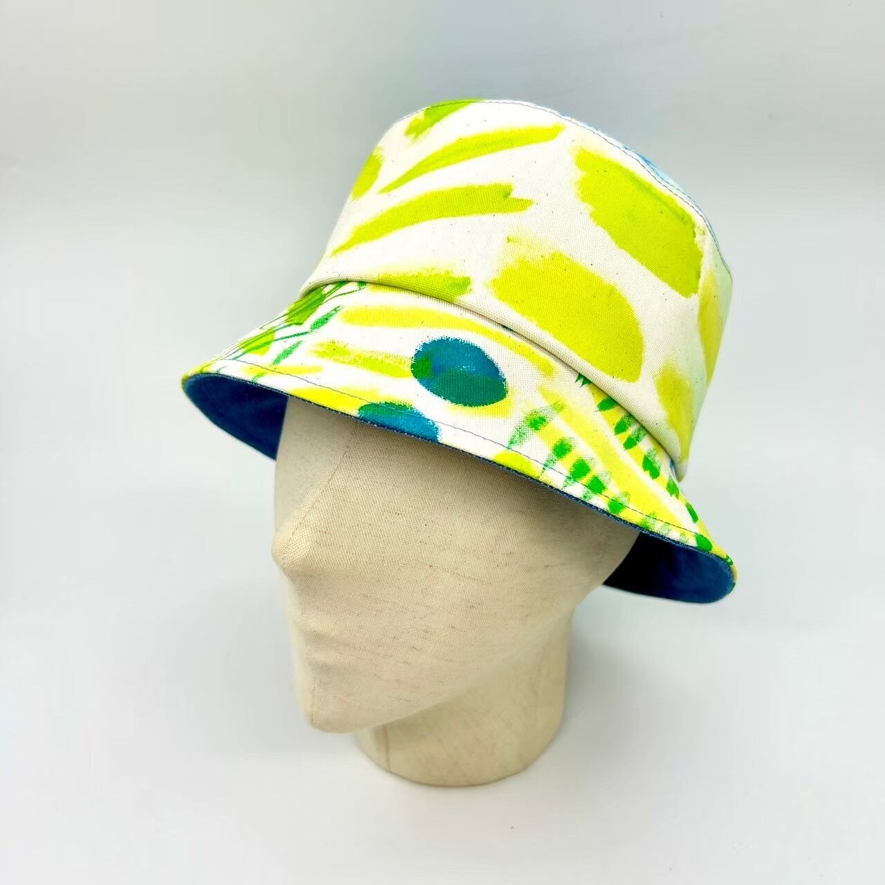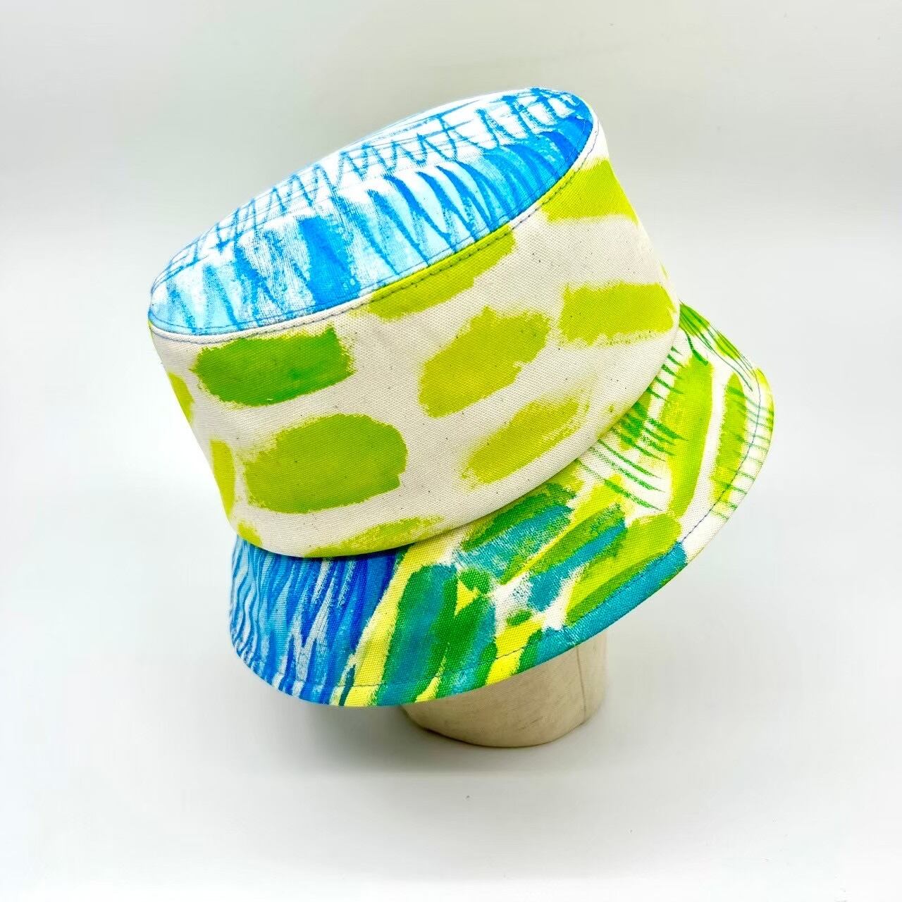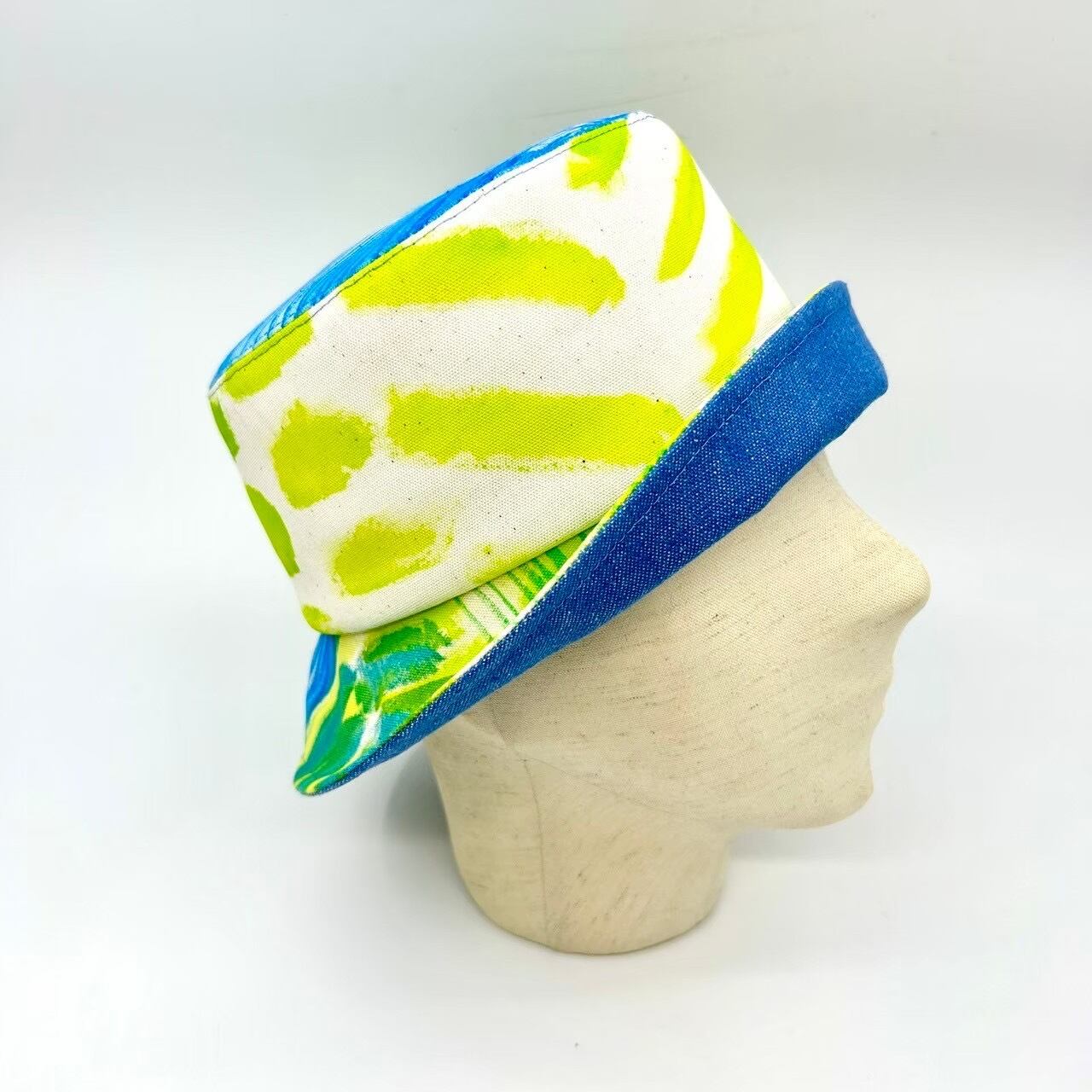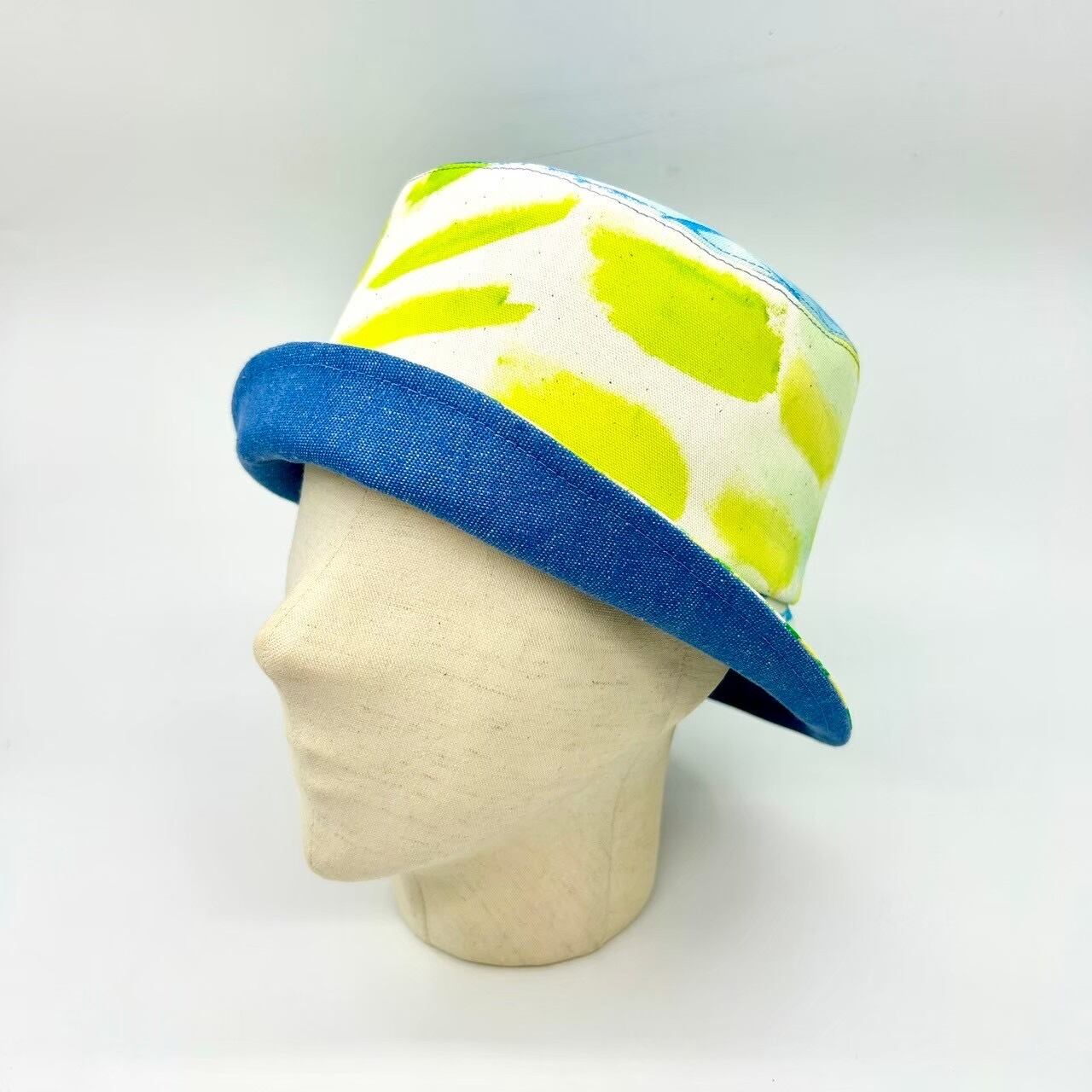 本体はオリジナルテキスタイル(手書きの生地)になります。裁断部分によって柄の出方が異なるので、ほぼ、、1点物!になります。日差し除けにもなるので春夏におススメ!