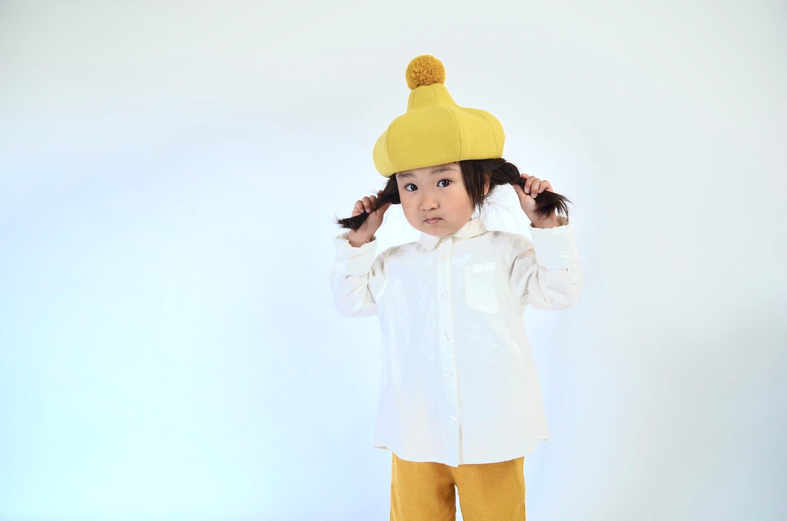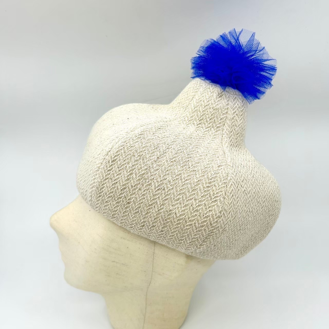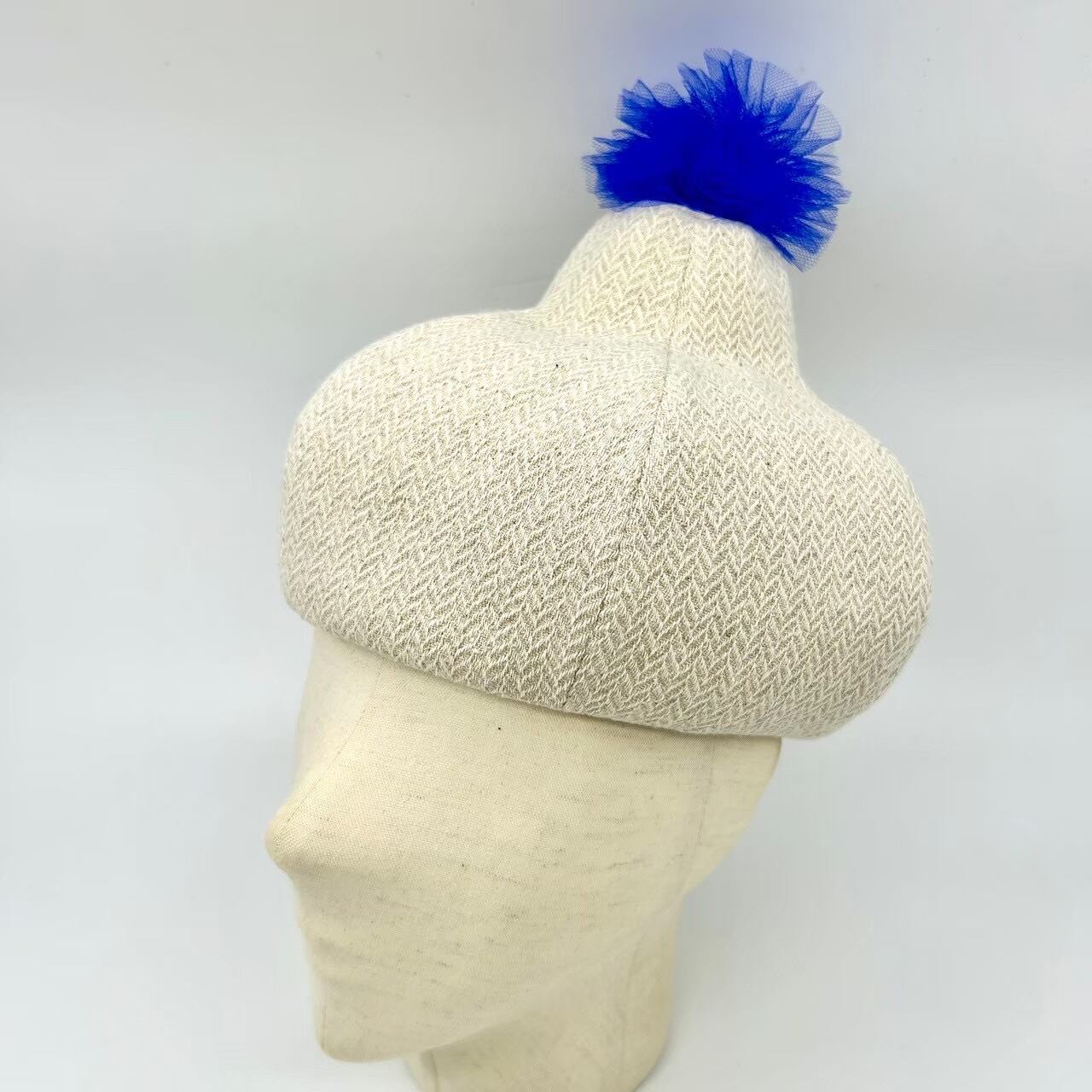 なんとも言えない尖ったシルエットは、パタ-ンから製作したオリジナルシルエット。トップにチュールで作ったポンポンをつけて可愛さアップ!!コーディネ-トのポイントに是非☆